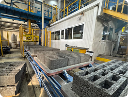 Безопалубочное формование (ECHO), вертикальное вибропрессование (Pedershaab VIHY), вибропрессование (Masa) — гарантия точности и прочности.
